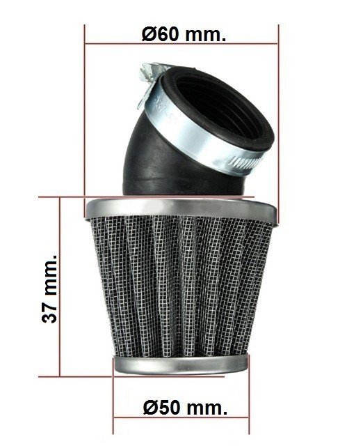 Luftfilter / Powerfilter, monteringshul: Ø28+35 mm. / 45 grader bøjning (lille type)