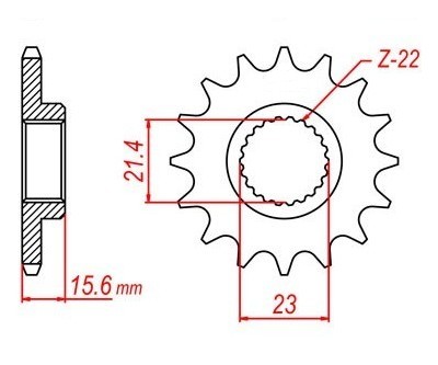 Kædehjul, for -15 tands (tykkelse: 15,6 mm.)